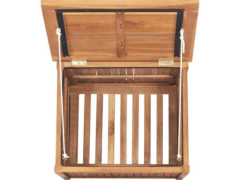 Dřevo bylo ošetřeno lazurou, která mu propůjčila krásnou teplou barvu. Úložná truhla je dostatečně prostorná, abyste si do ní mohli uložit a v dosahu ruky si zorganizovat potřeby vaší domácnosti nebo zahrady. Truhla je navíc opatřena prošívaným PE vakem. Vnitřní výstelka je voděodolná a uchová uložený obsah truhly v suchu a bezpečí.