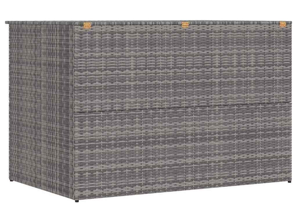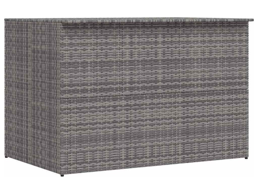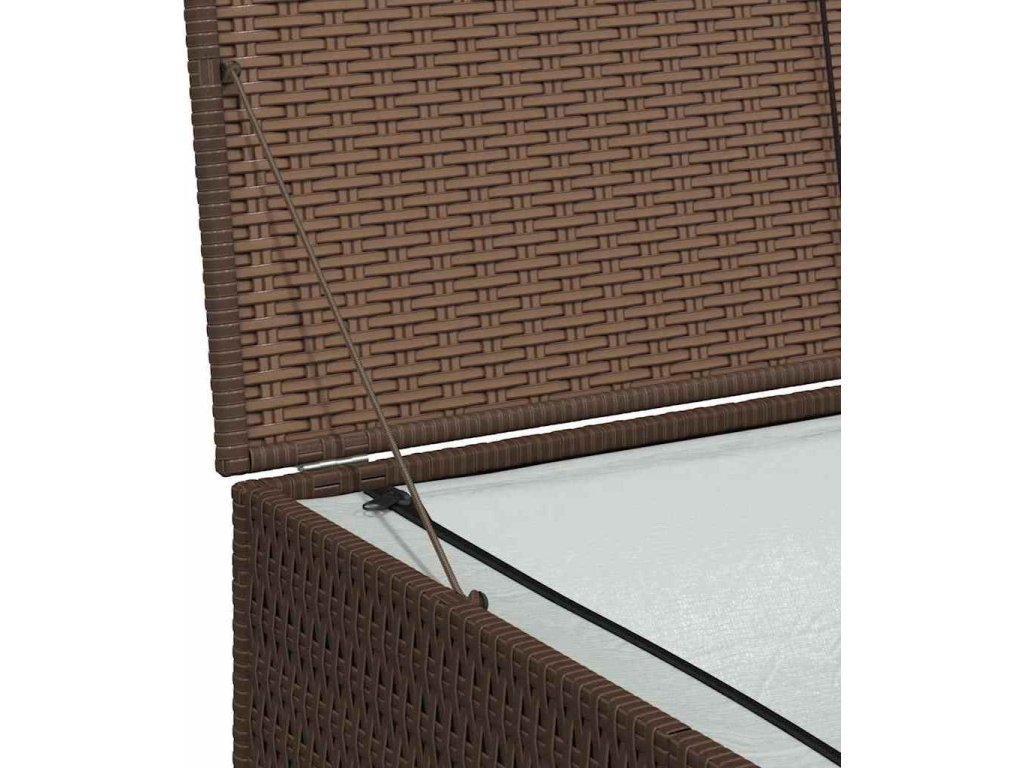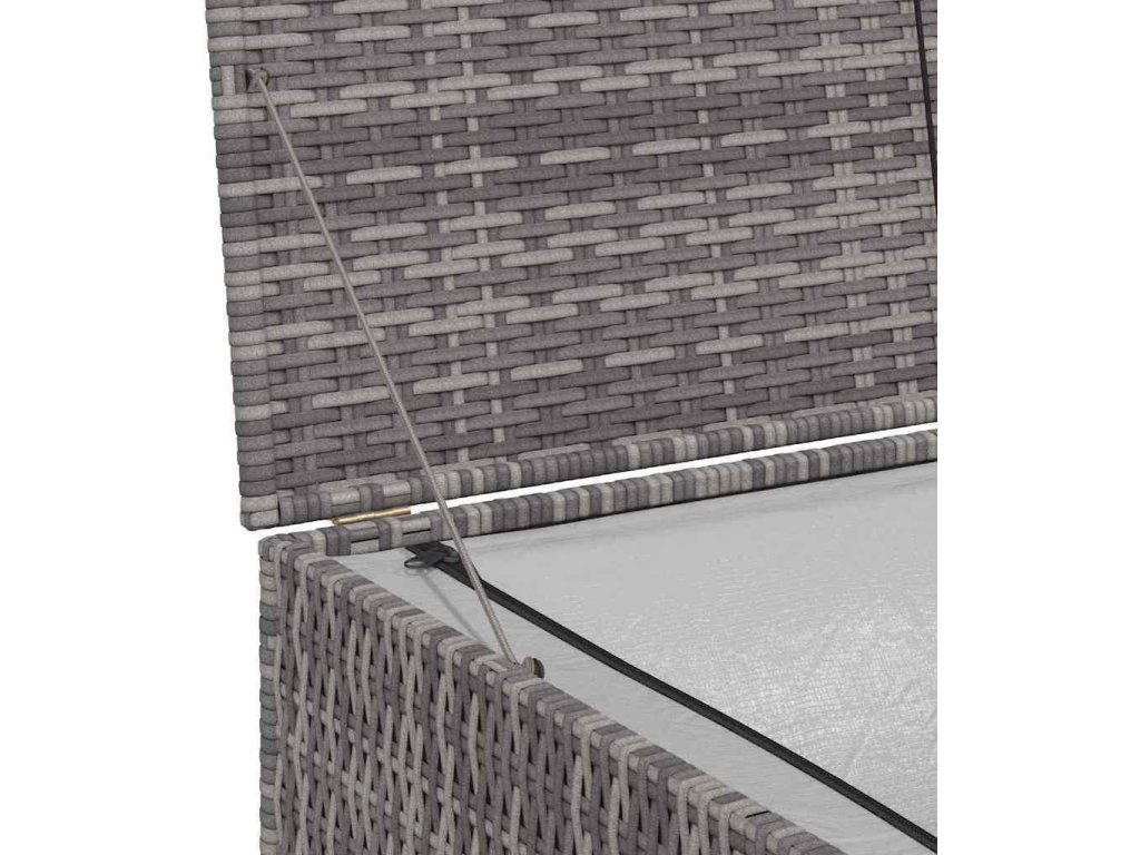 Klimaticky odolný PE ratan, ze kterého je úložná truhla vyrobená, se snadno čistí, je odolný vůči opotřebení a vhodný jak pro venkovní, tak i vnitřní použití. Zahradní úložný box má pevný ocelový rám s práškovým nástřikem, který zaručuje dlouhou životnost. Vnitřní výstelka z PE se zapínáním na zip ochrání obsah před vlhkostí. Úložná truhla má moderní design, který se hodí do jakéhokoli bydlení, ať už uvnitř nebo venku.