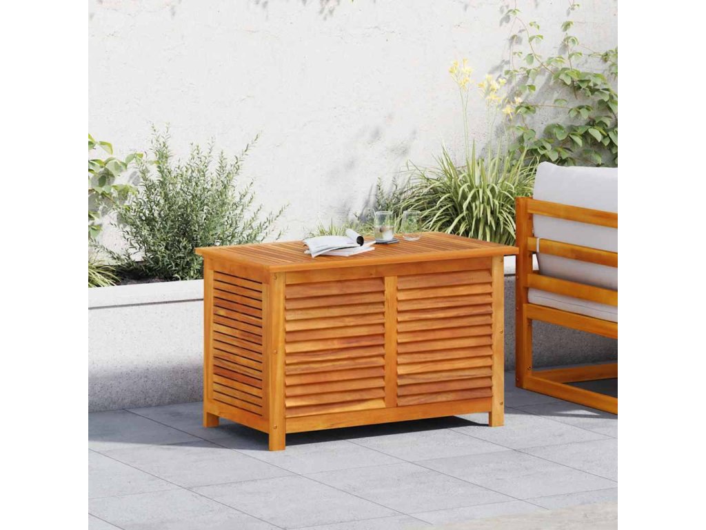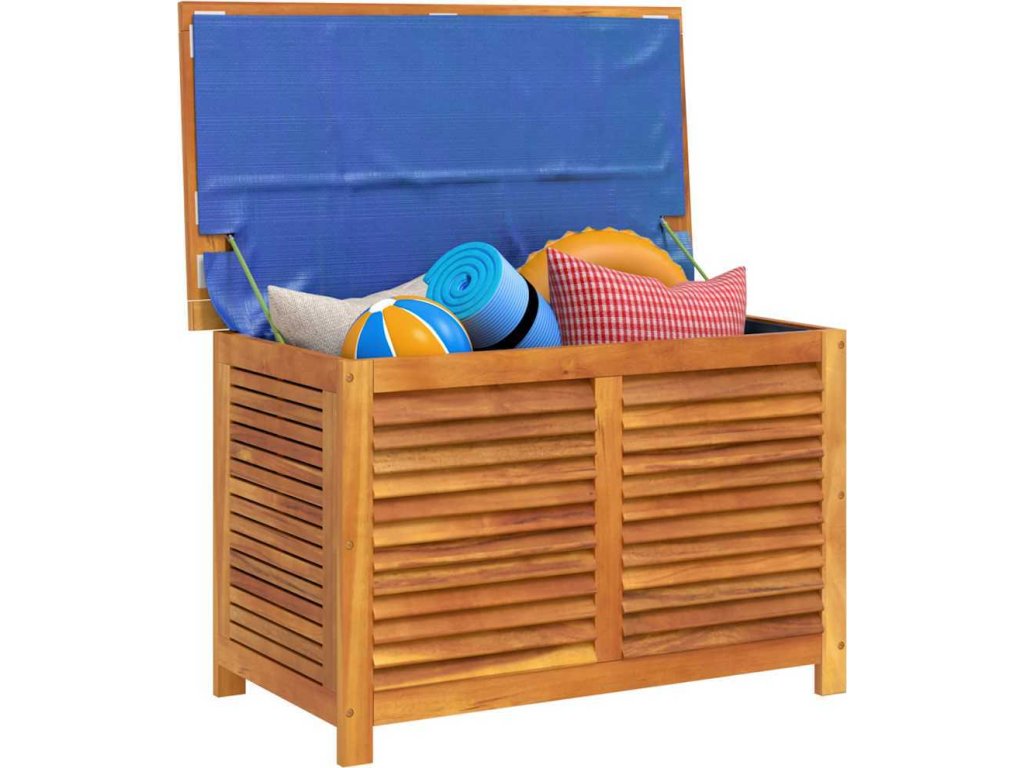 - Materiál zahradního úložného boxu: masivní akáciové dřevo s olejovou povrchovou úpravou