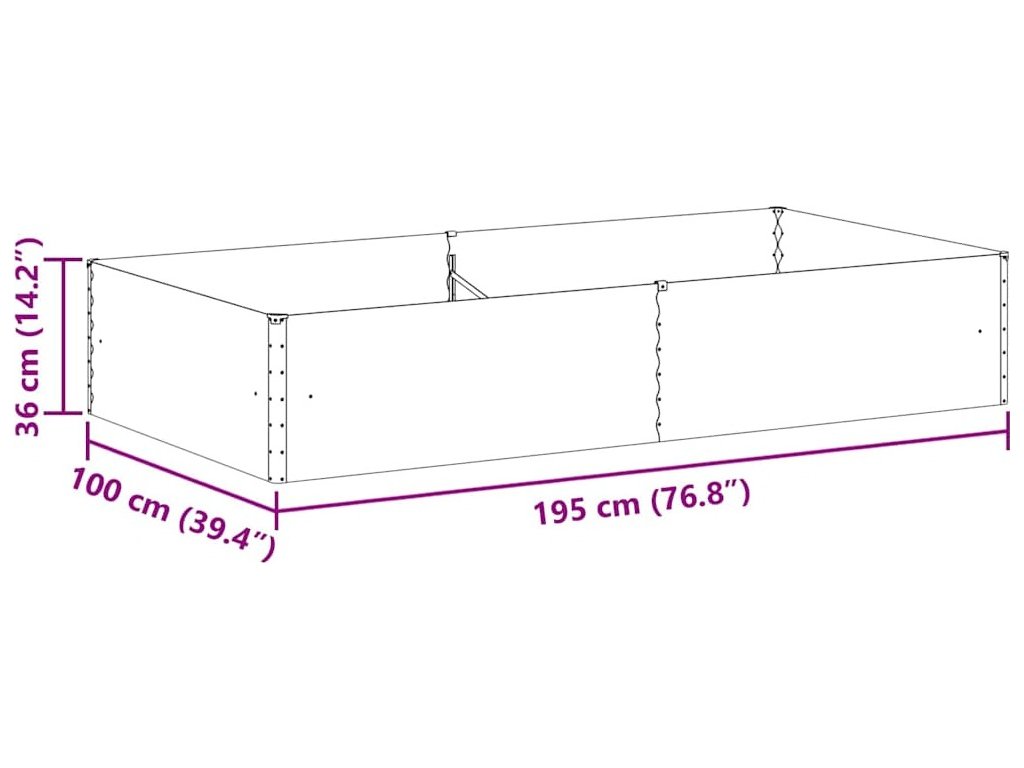 Zahradní vyvýšený záhon 195 x 100 x 36 cm Pozinkovaná ocel [42017359]