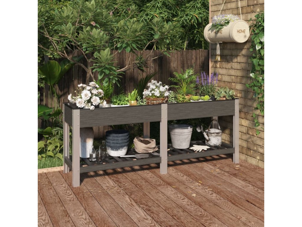 Zahradní vyvýšený záhon s policí šedý 200 x 50 x 75 cm WPC [362573]