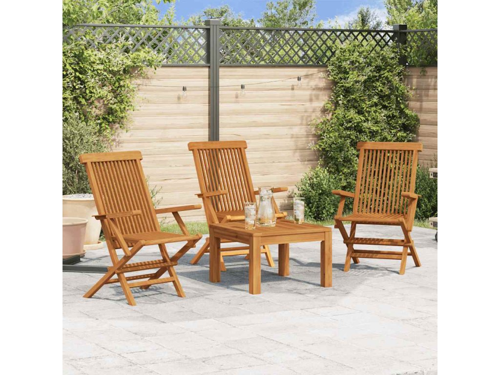 Tato sada 3 teakových zahradních židlí skvěle doplní vaše zahradní posezení, terasu nebo dvůr a je perfektní pro chvíle s rodinou a přáteli nebo relaxaci za hezkého počasí.