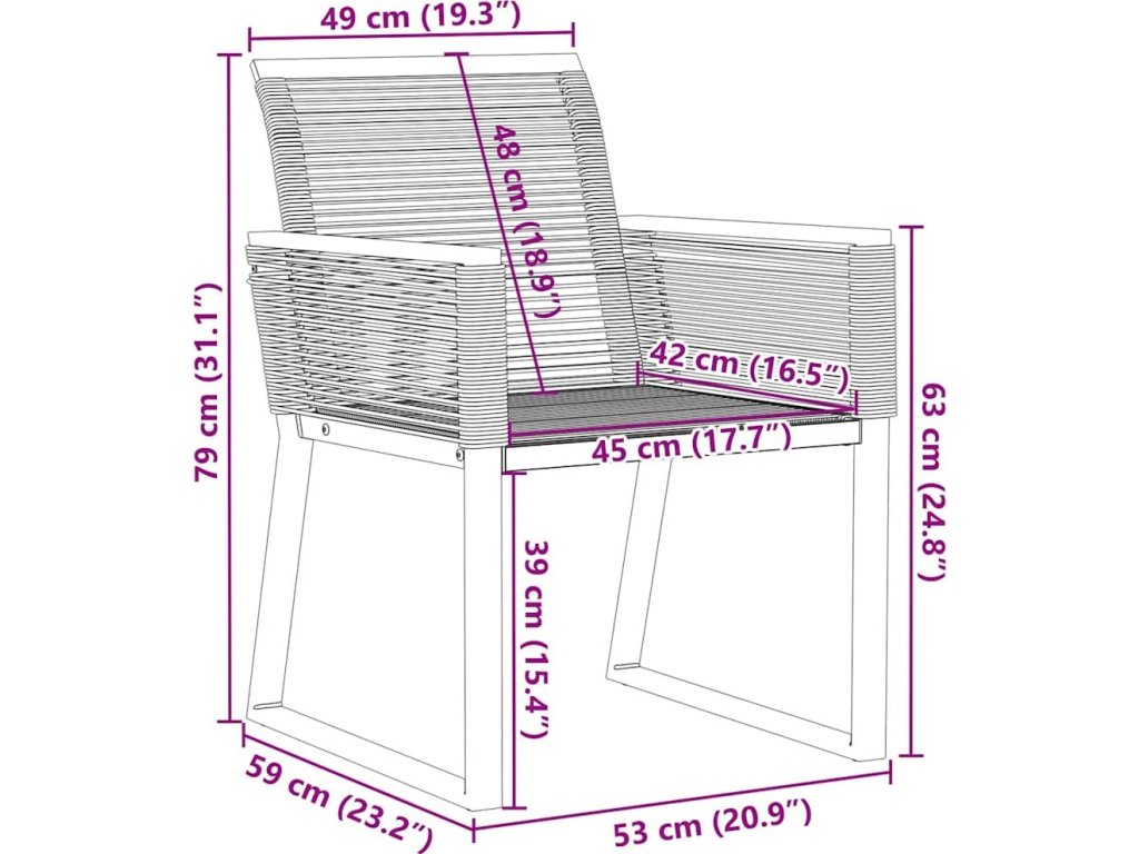 - Rozměry (každý kus): 53 x 59 x 79 cm (Š x H x V)