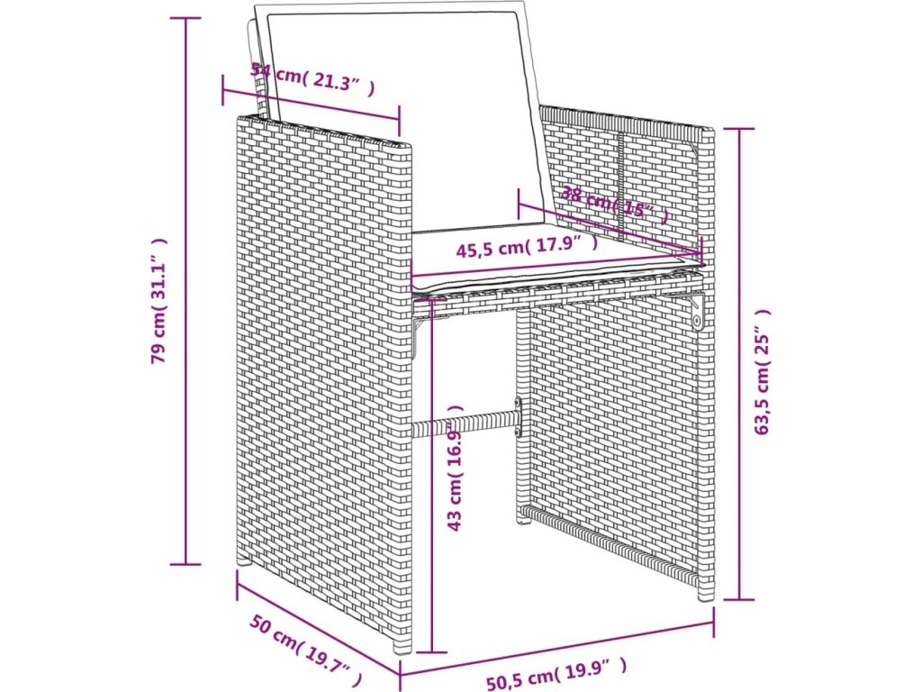 - Robustní a stabilní rám: Ocelový rám s práškovým nástřikem zajišťuje, že zahradní nábytek je pevný a stabilní pro každodenní venkovní použití.