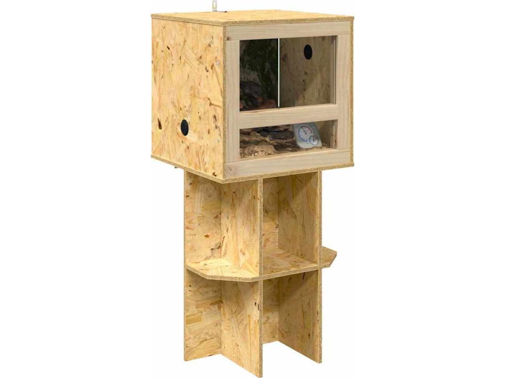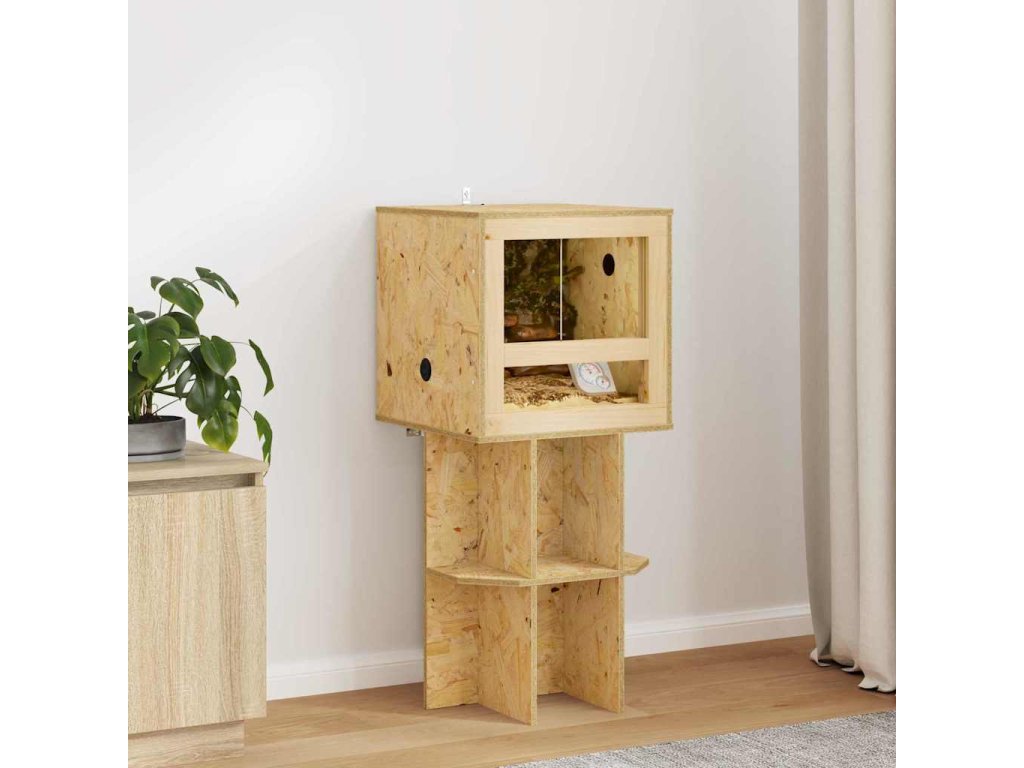 - Prostorný úložný prostor: Obsahuje police z OSB materiálu, které poskytují skvělou možnost pro uložení věcí potřebných pro péči o plazy nebo dekorativní doplňky. Tyto police zaručují, že mazlíčci mají vše potřebné pro pohodlný a stimulující habitat, díky čemuž se domovy transformují na úchvatné výstavní plochy přírodní krásy.