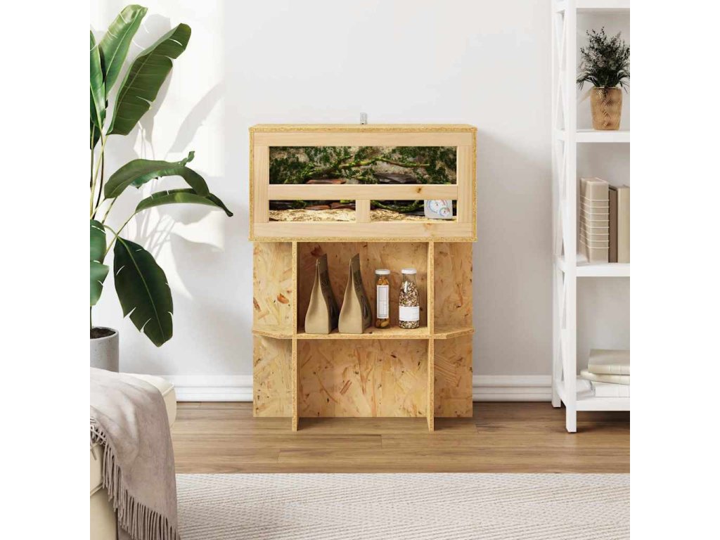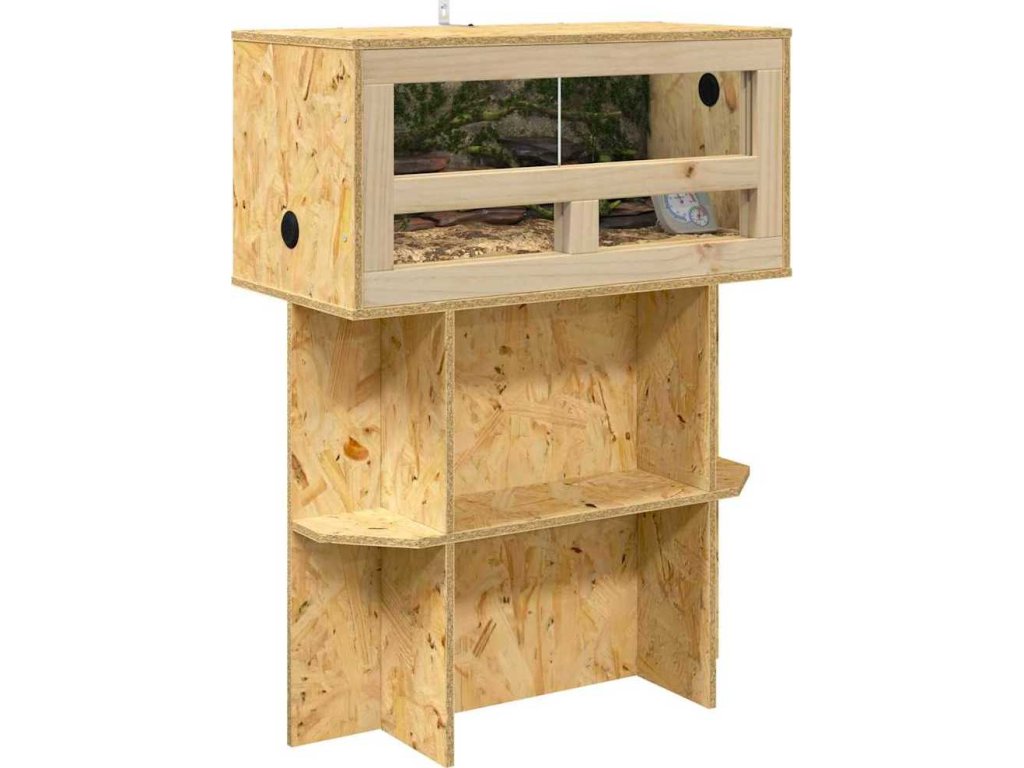 - Prostorný úložný prostor: Obsahuje police z OSB materiálu, které poskytují skvělou možnost pro uložení věcí potřebných pro péči o plazy nebo dekorativní doplňky. Tyto police zaručují, že mazlíčci mají vše potřebné pro pohodlný a stimulující habitat, díky čemuž se domovy transformují na úchvatné výstavní plochy přírodní krásy.