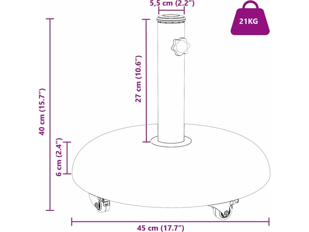 - Součásti v balení: Kulatá základna pro různé styly slunečníků. Rolovací design usnadňuje přesouvání, takže ji můžete snadno přizpůsobit podle polohy slunce.