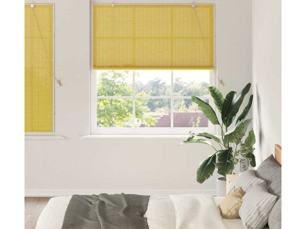 Roleta se záclonami Žlutá 150 x 160 cm bambus [42006876]