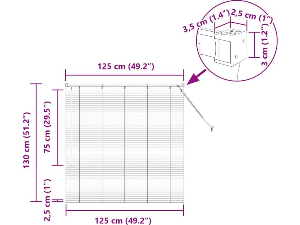 Žaluziové rolety Bílá 130 x 125 cm Hliník [42005977]
