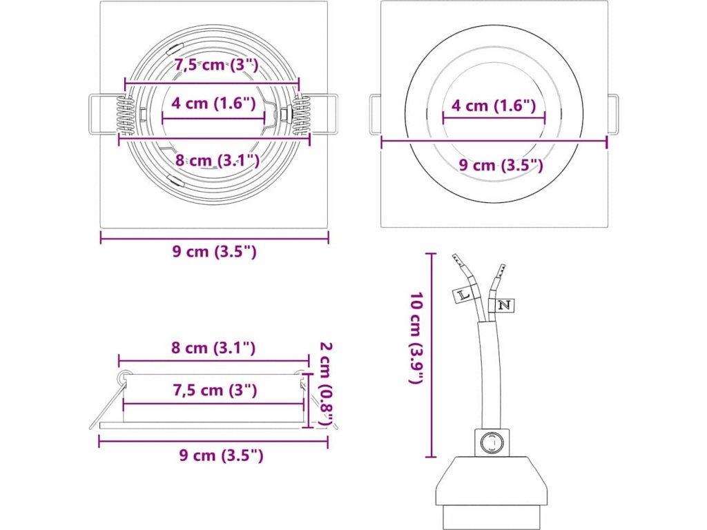 - Hliník odolný proti korozi: Toto recessed spotlight je vyrobeno z kvalitního hliníku, který je trvanlivý a odolný. Díky tomu vypadá i po dlouhé době skvěle, i v vlhčích místech, a skvěle se hodí k moderním nebo minimalistickým interiérům.