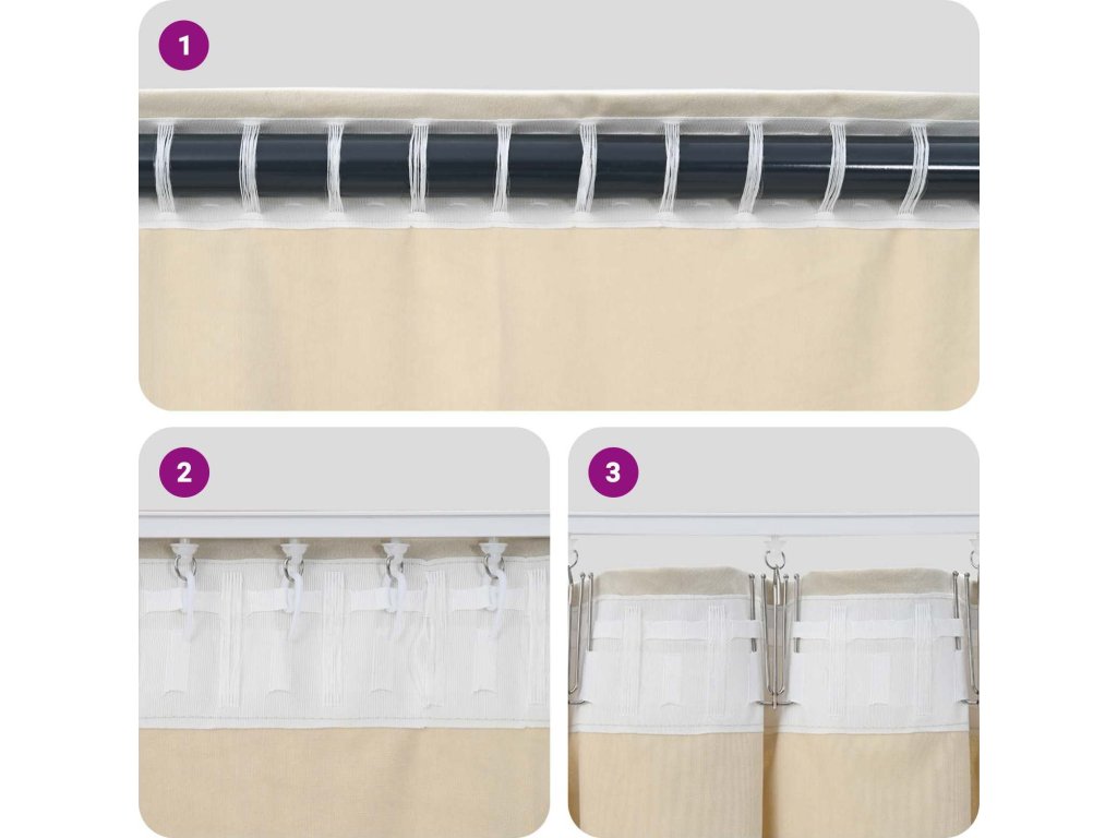- Funkční design Díky praktickým textilním smyčkám se zavěšení závěsů stává jednoduchým úkolem. Každý si s tím poradí i s minimálním úsilím. Funkční prvek doplňuje moderní styl, který se projeví v neat a elegantním vzhledu po instalaci.
