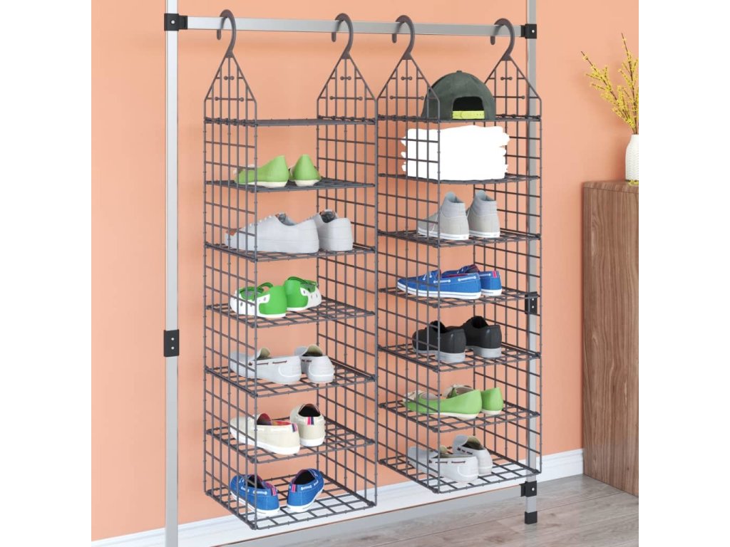 - Další úložný prostor: Tyto závěsné skříňové organizéry mají 7 polic a dokonale využívají úložný prostor ve skříni.