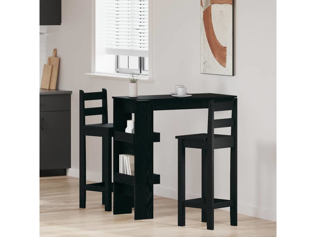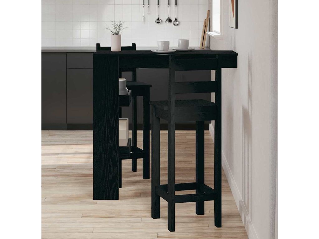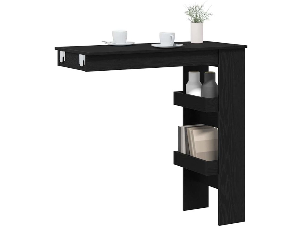 Tento moderní stěnový barový stůl dodá vašemu prostoru šmrnc díky elegantnímu a modernímu designu. Skvěle se hodí do kuchyně nebo jídelny. Kombinuje jednoduchost s funkčností, ideální do malých prostor nebo minimalistických interiérů. Atraktivní černý dubový povrch dodává na eleganci a snadno se bude kombinovat s ostatním nábytkem. Barový stůl je perfektní na intimní setkání nebo neformální jídla a zlepší váš obývací prostor.