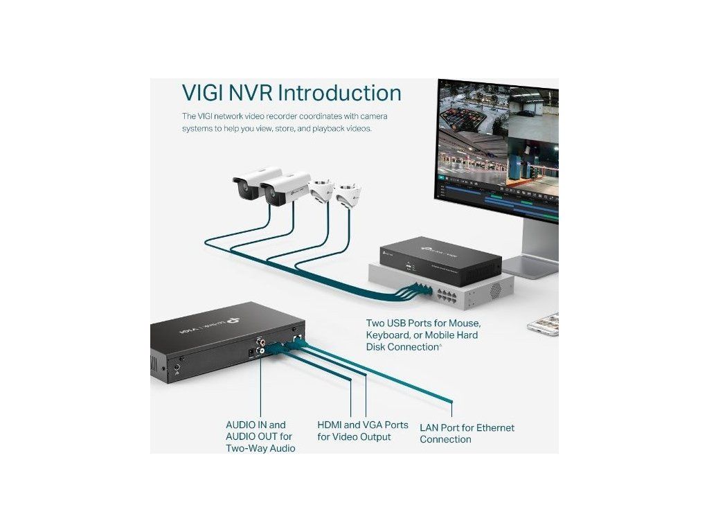 Síťové 8kanálové záznamové zařízení TP-Link VIGI NVR1008H slouží pro nepřetržité nahrávání videí 24 hodin denně po celých 7 dní v týdnu, proto vždy bude monitorovaný objekt, nemovitost či pozemek v naprostém bezpečí za každé situace. Nechybí zde také podpora mobilní aplikace VIGI, která je vhodná pro vzdálené sledování dění, pro kontrolu uložených záznamů ze 4 kamer současně či pro rychlé vyhledávání události pomocí zrychleného přehrávání.