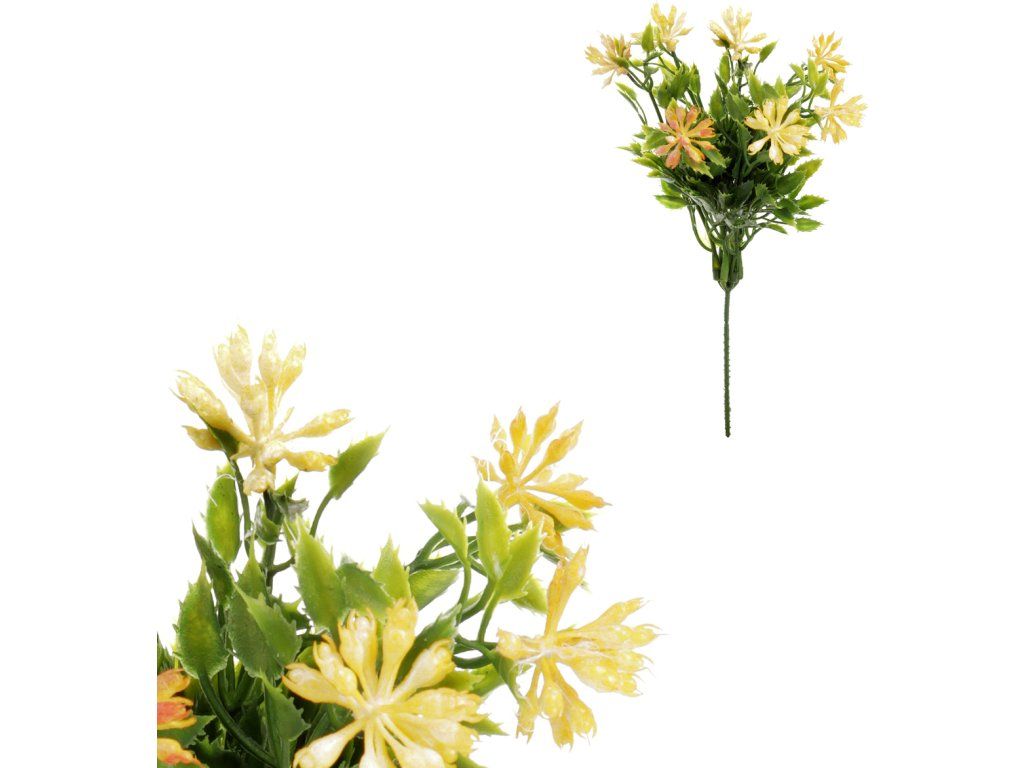 Zeleň kvetoucí - umělý trs, zápich, oranžové květy, cena za 1 ks KU4207-OR