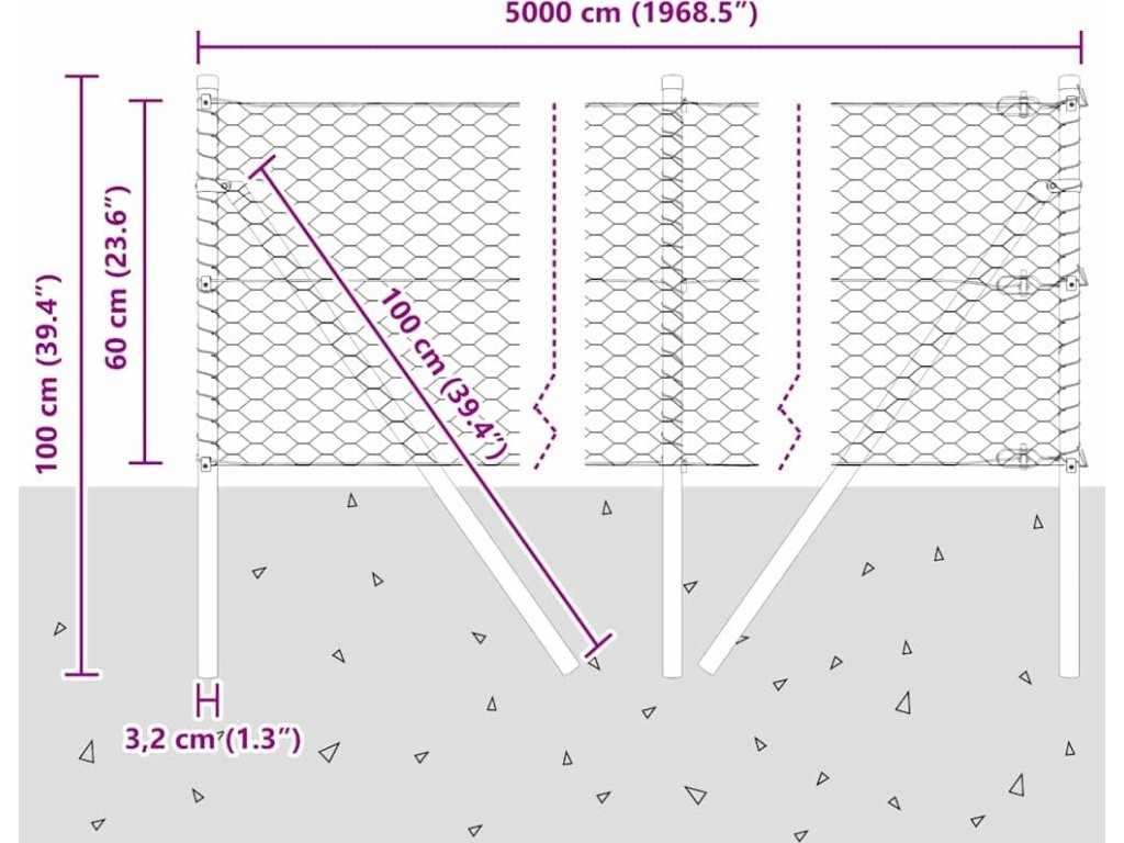 Plotový sloupek. Zelená 50 x 0,6 m (36 mm síť) Ocel a PVC [3352702]