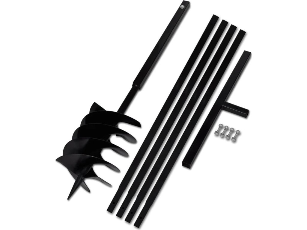 - Balení obsahuje zemní vrták, rukojeť, 4 ks prodlužovacích nástavců a šrouby