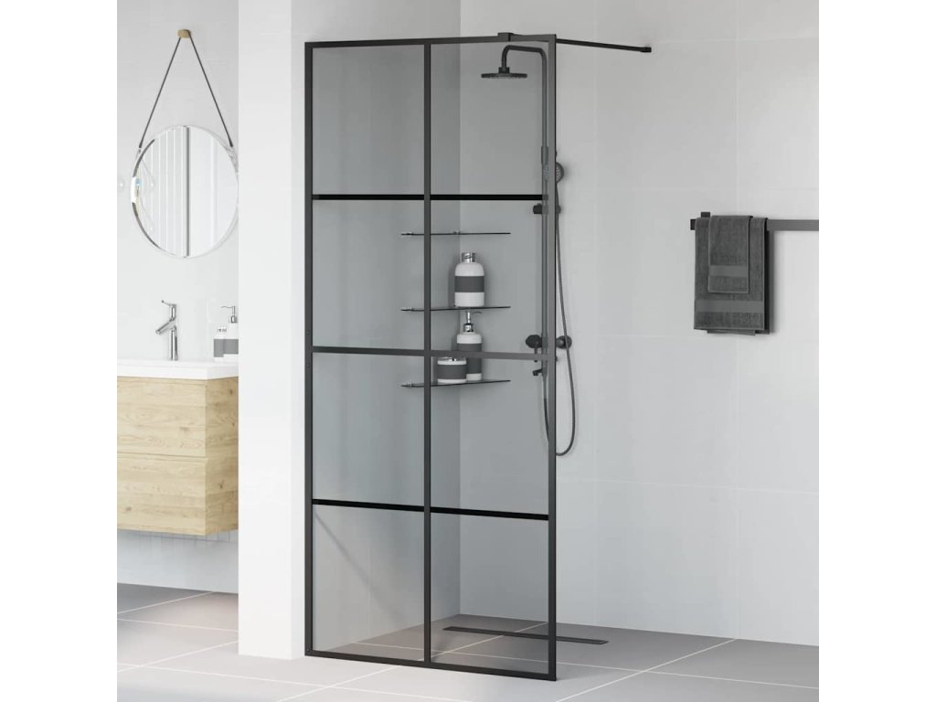 Zevnitř vstupní sprchová zeď Černá 90 x 195 cm tvrzené sklo [42022048]