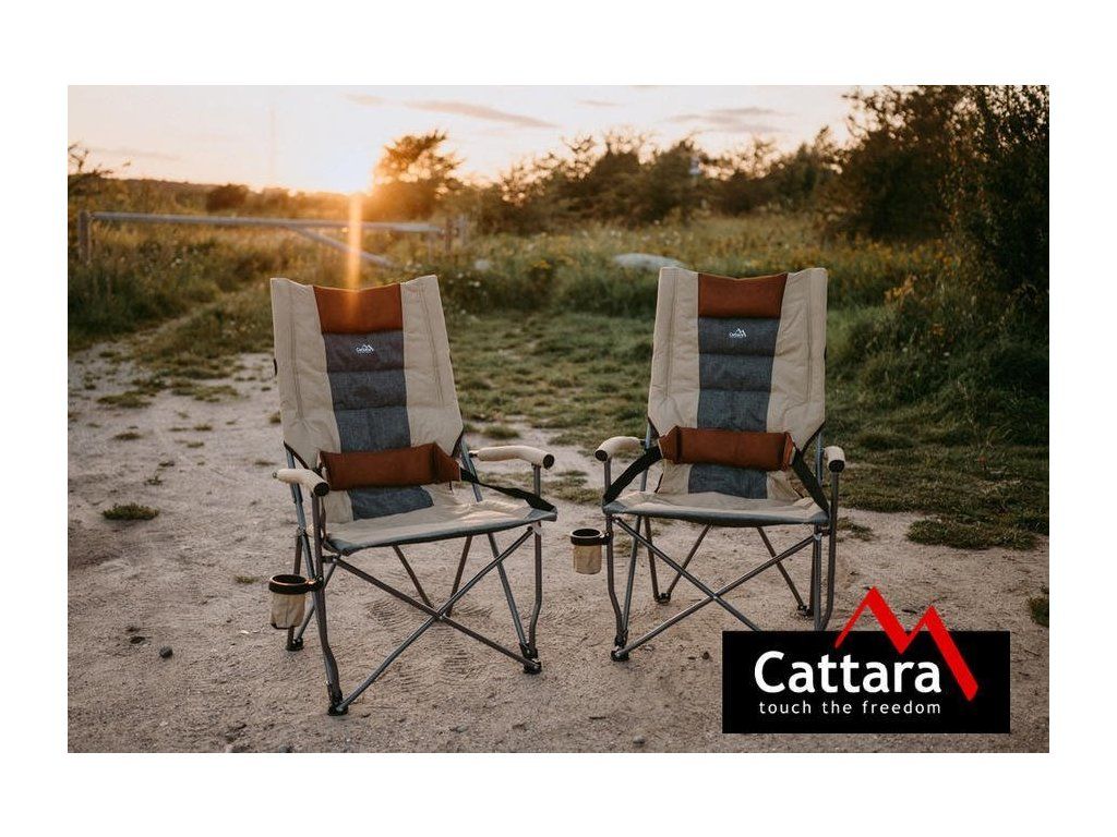 Odpočiňte si u vody, v přírodě, v kempu, na hudebním festivalu nebo jen poseďte chvíli na čerstvém vzduchu na zahradě. Skládací židle Cattara GRANT vám poskytne pohodlí. Uvelebíte se na kvalitně sešitý polstrovaný potah, položíte ruce na pohodlné rukojeti a opřete se zády o opěradlo. Zádová část je vybavená bederním polštářkem. Pomocí popruhů si u něj nastavíte ideální výšku pro co největší komfort. Na pravé straně židle se navíc nachází praktický držák na nápoj se síťovaným dnem.