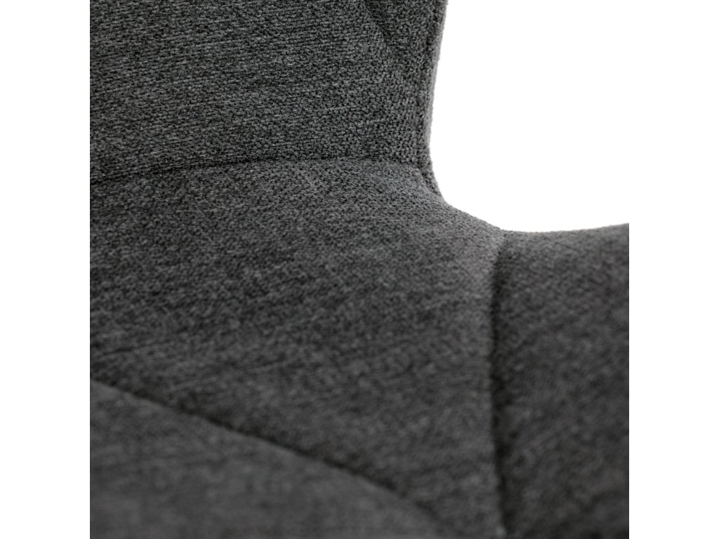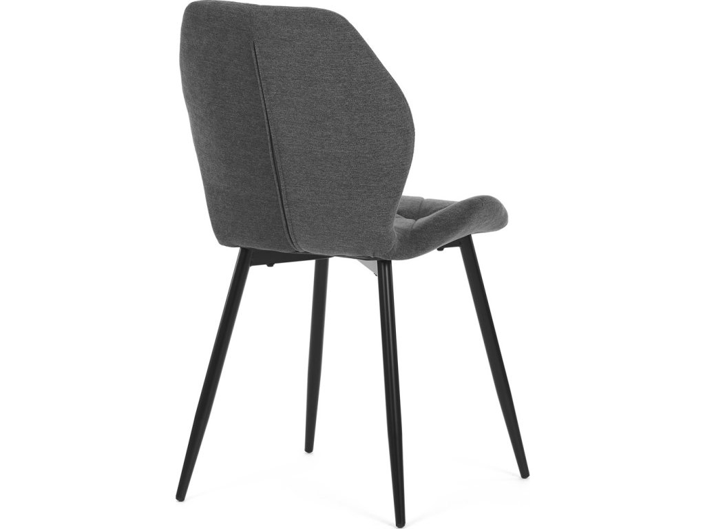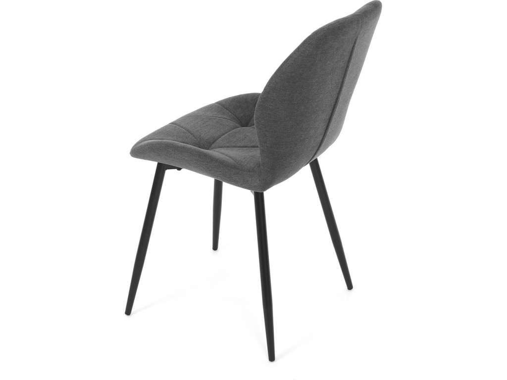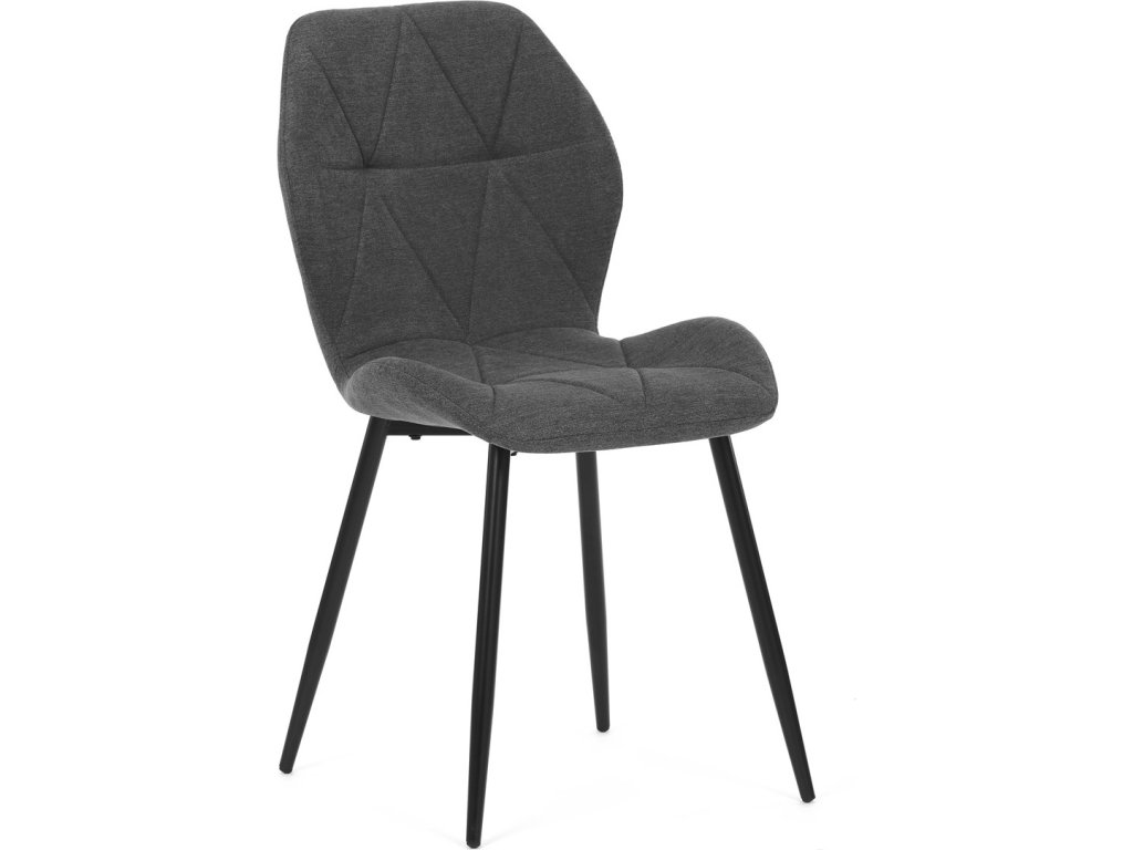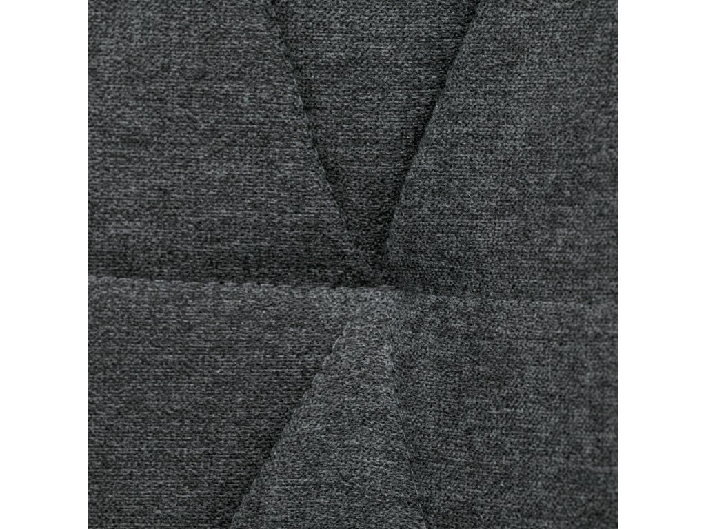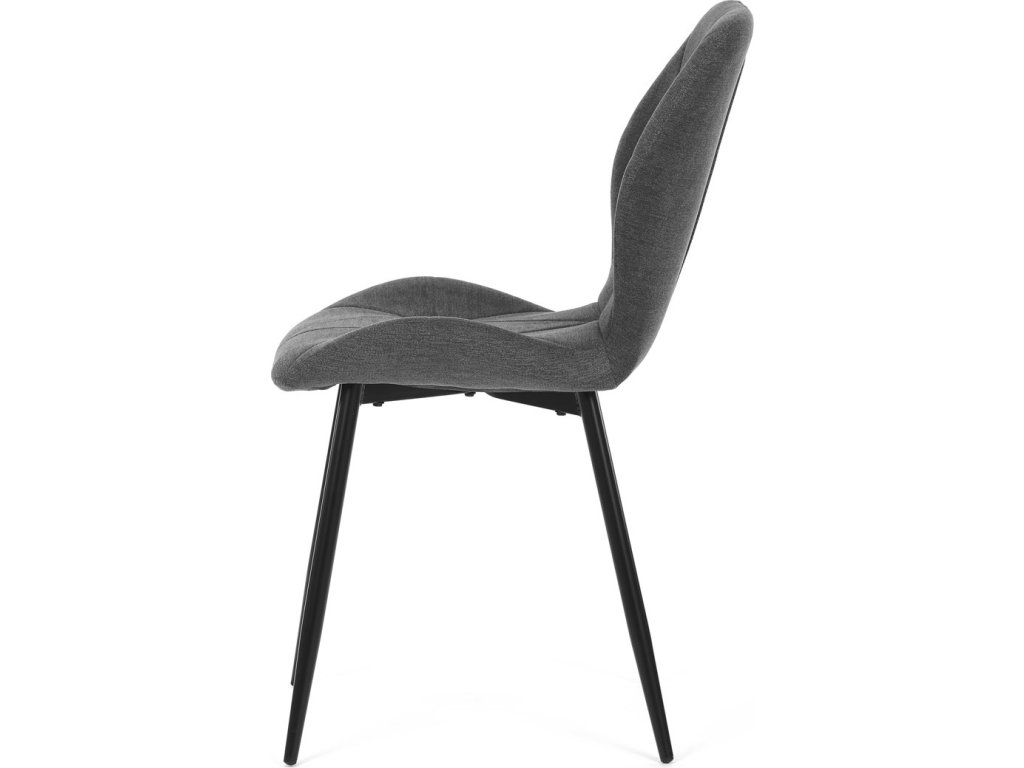 Židle je čalouněná kvalitní tmavě šedou látkou, která je měkká na dotek a zároveň odolná proti opotřebení. Ergonomicky tvarované sedadlo a opěradlo s dekorativním prošíváním poskytují vysoký komfort i při delším sezení. Židle stojí na pevných kovových nohách v černém provedení, které zajišťují stabilitu a dlouhou životnost. Nohy jsou elegantně zkosené, což dodává židli moderní vzhled a zajišťuje pevnou stabilitu.
