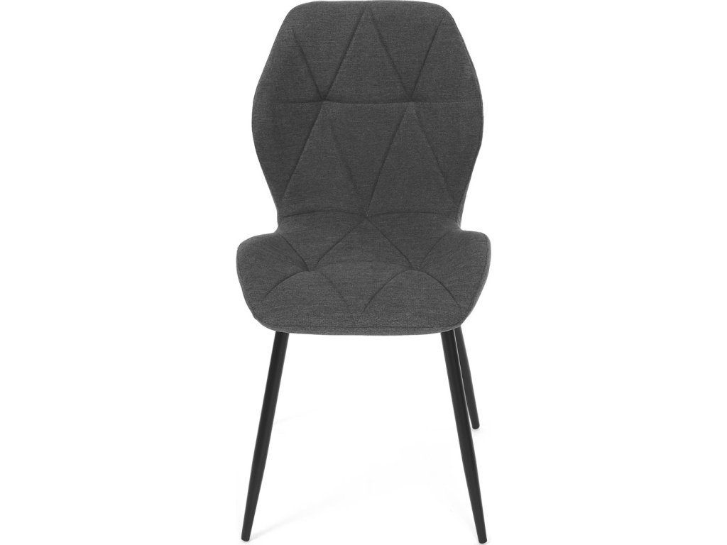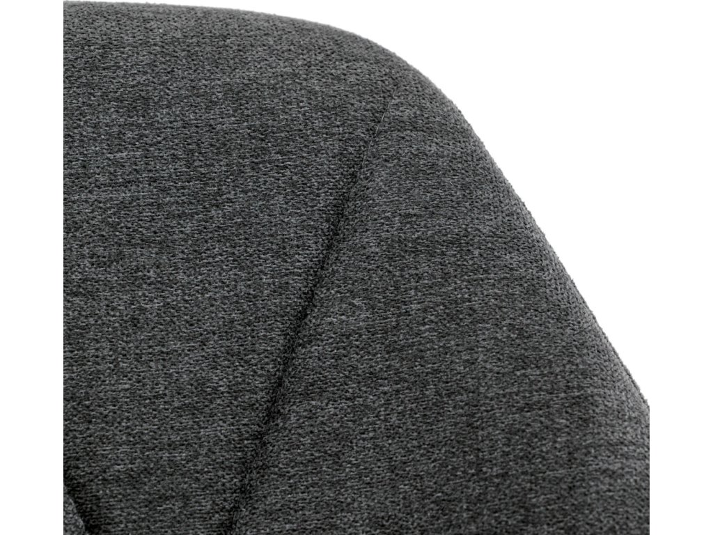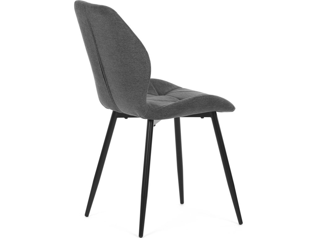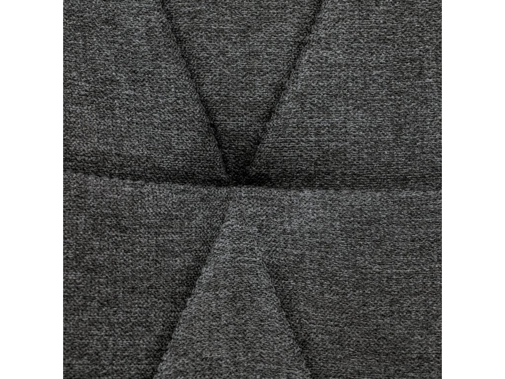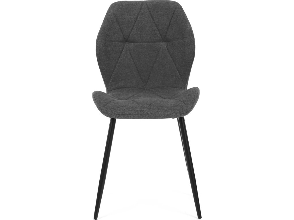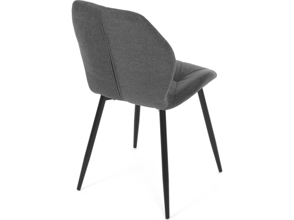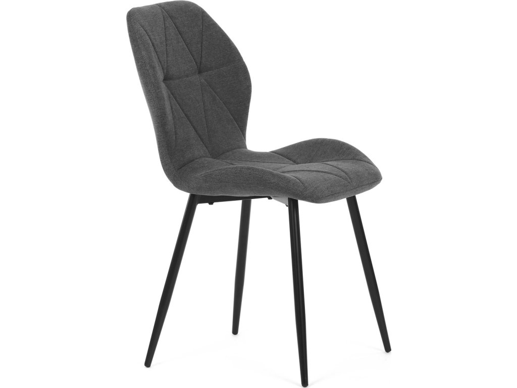 Židle je čalouněná kvalitní tmavě šedou látkou, která je měkká na dotek a zároveň odolná proti opotřebení. Ergonomicky tvarované sedadlo a opěradlo s dekorativním prošíváním poskytují vysoký komfort i při delším sezení. Židle stojí na pevných kovových nohách v černém provedení, které zajišťují stabilitu a dlouhou životnost. Nohy jsou elegantně zkosené, což dodává židli moderní vzhled a zajišťuje pevnou stabilitu.