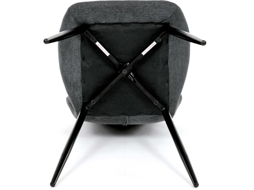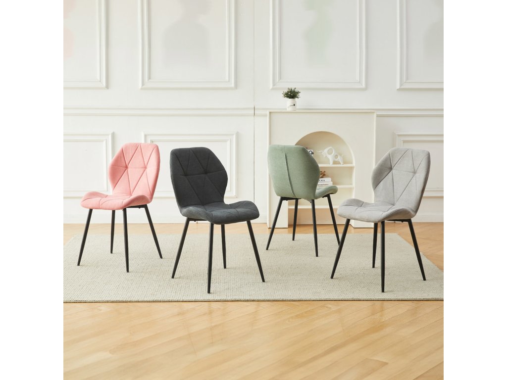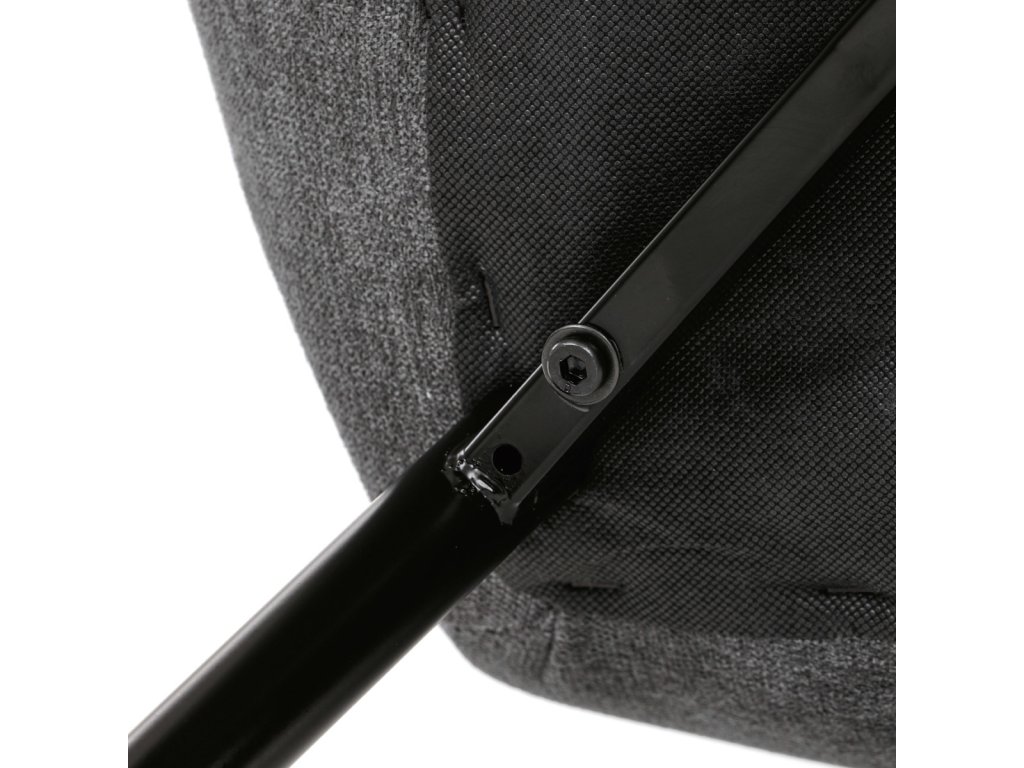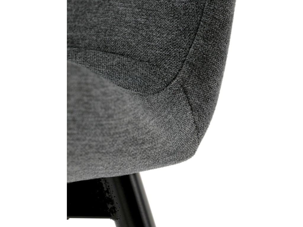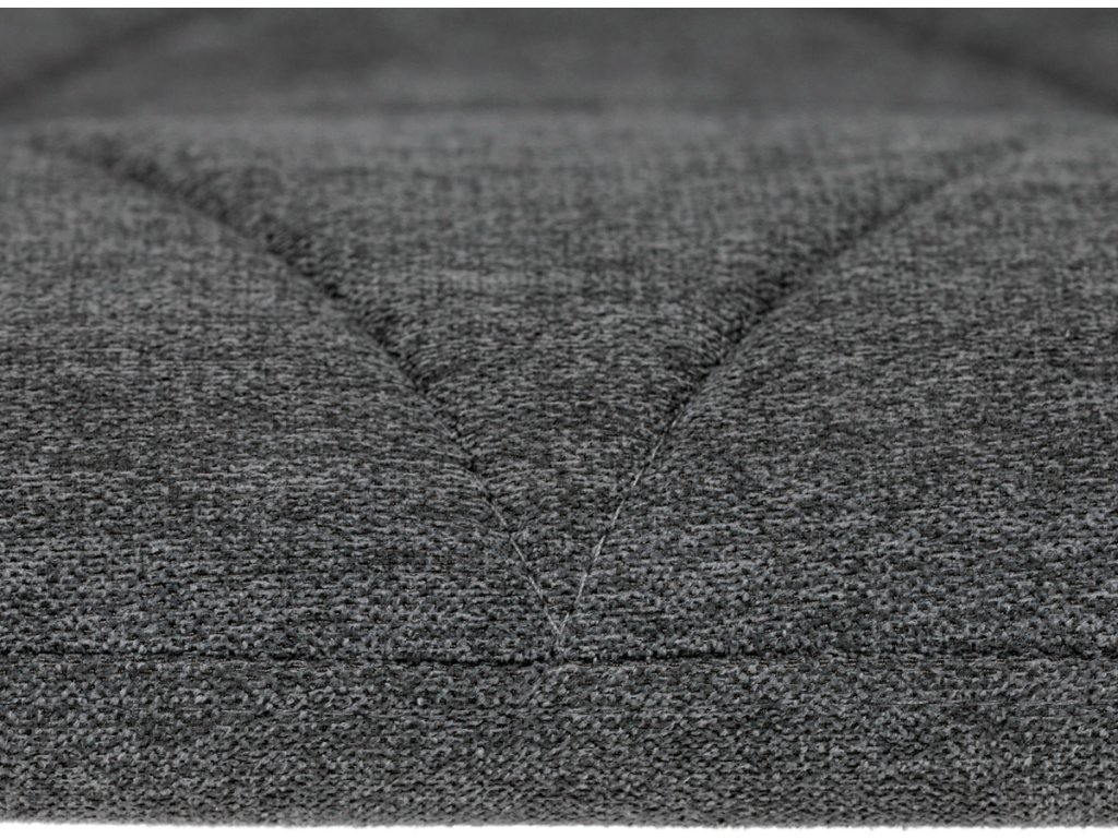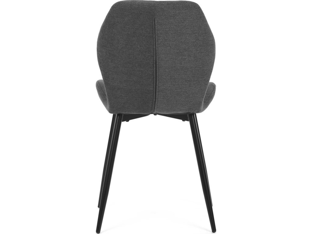 Židle je čalouněná kvalitní tmavě šedou látkou, která je měkká na dotek a zároveň odolná proti opotřebení. Ergonomicky tvarované sedadlo a opěradlo s dekorativním prošíváním poskytují vysoký komfort i při delším sezení. Židle stojí na pevných kovových nohách v černém provedení, které zajišťují stabilitu a dlouhou životnost. Nohy jsou elegantně zkosené, což dodává židli moderní vzhled a zajišťuje pevnou stabilitu.