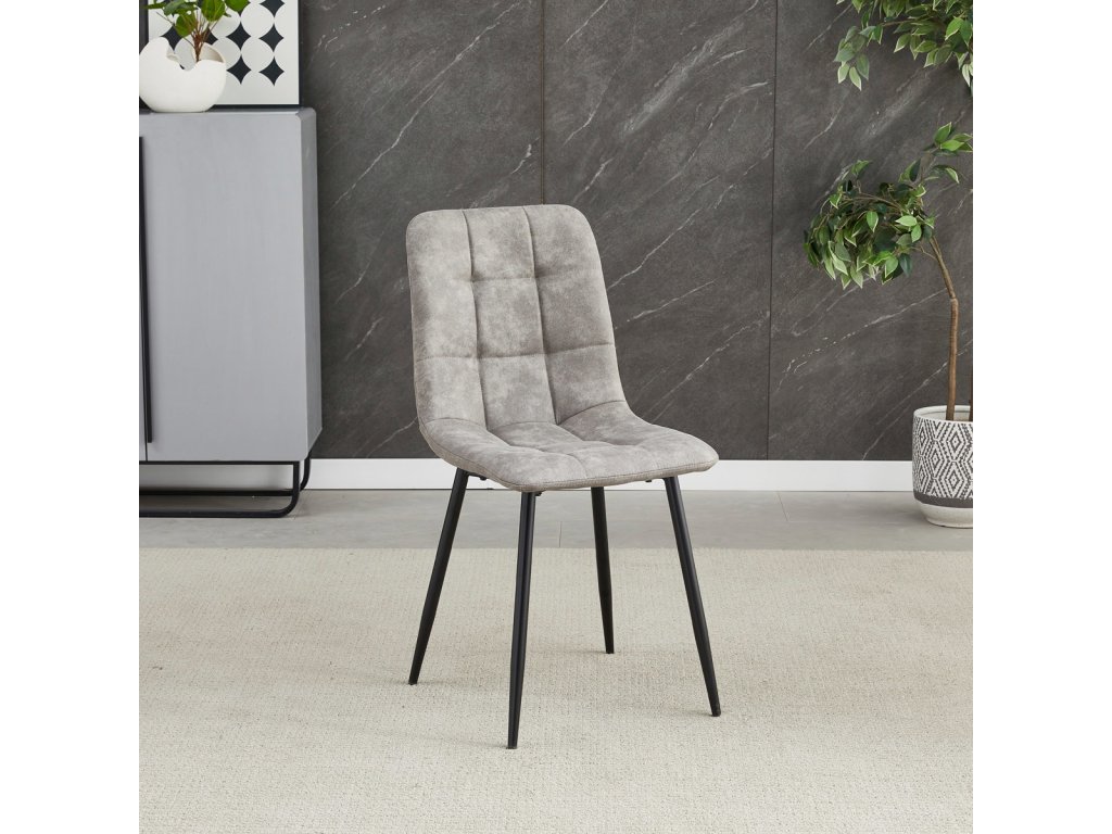 Jídelní židle značky Autronic v moderním industriálním stylu je skvělou volbou pro každou jídelnu. Potah z látky vintage v šedém odstínu dodává nábytku osobitý charakter, zatímco elegantní čtvercové prošívání podtrhuje její vzhled. Černé kovové nohy poskytují stabilitu a ladí s minimalistickým designem. Komfort při sezení zajišťuje měkké polstrování z PU pěny, díky kterému je židle ideální jak pro každodenní používání, tak pro slavnostní chvíle.