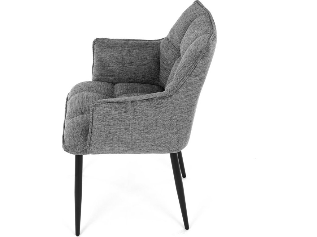 Stylová jídelní židle značky Autronic kombinuje moderní design s vysokou funkčností. Elegantní šedé čalounění z vodoodpudivé látky zajišťuje snadnou údržbu a odolnost proti nečistotám, což oceníte v každodenním provozu. Pohodlí při sezení zaručuje měkká PU pěna a integrované područky, které podporují správnou ergonomii. Stabilitu zajišťují čtyři kovové nohy v černém provedení, které podtrhují moderní vzhled. Tato židle skvěle doplní jakýkoliv jídelní prostor a přinese do něj sofistikovaný styl a pohodlí.