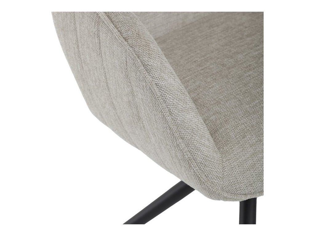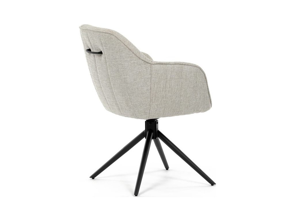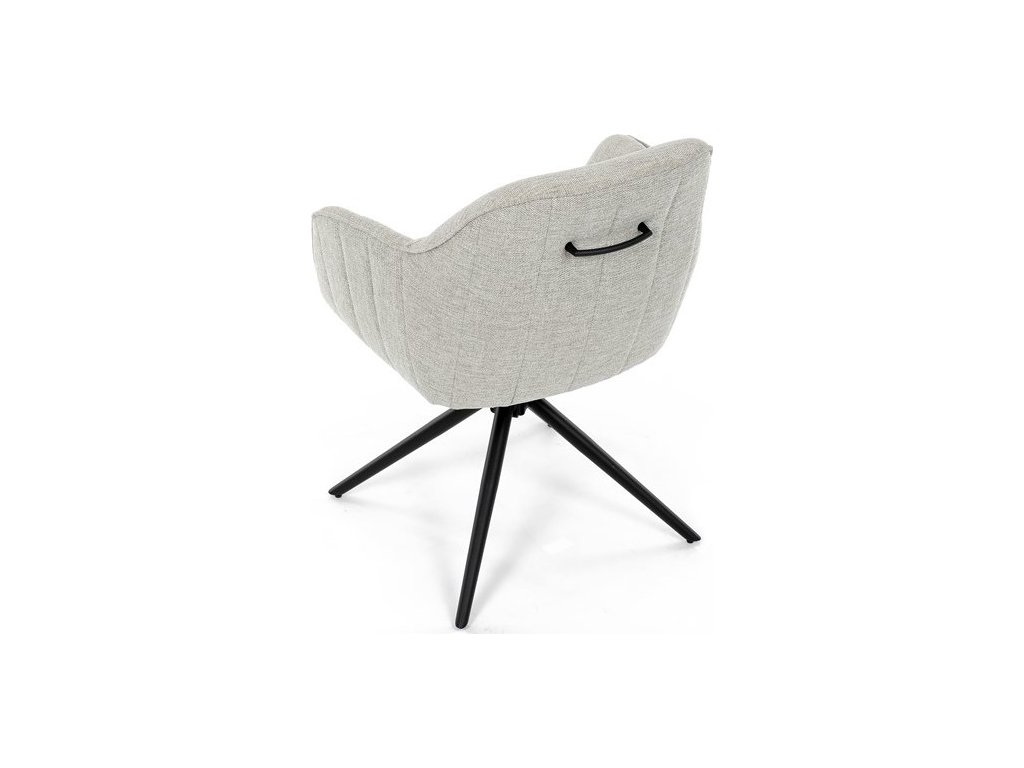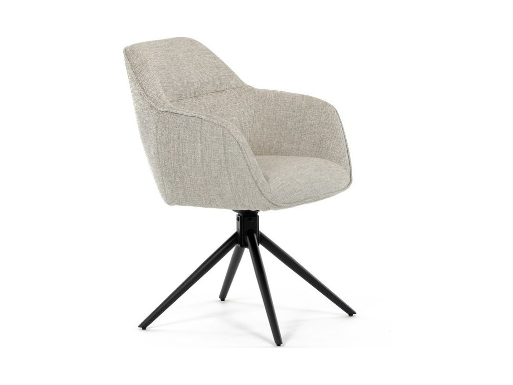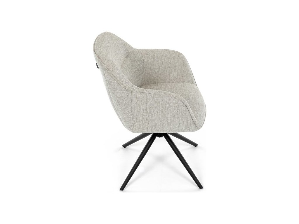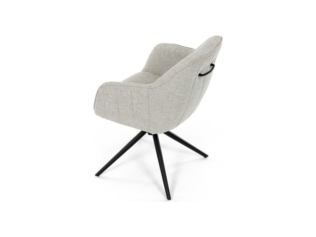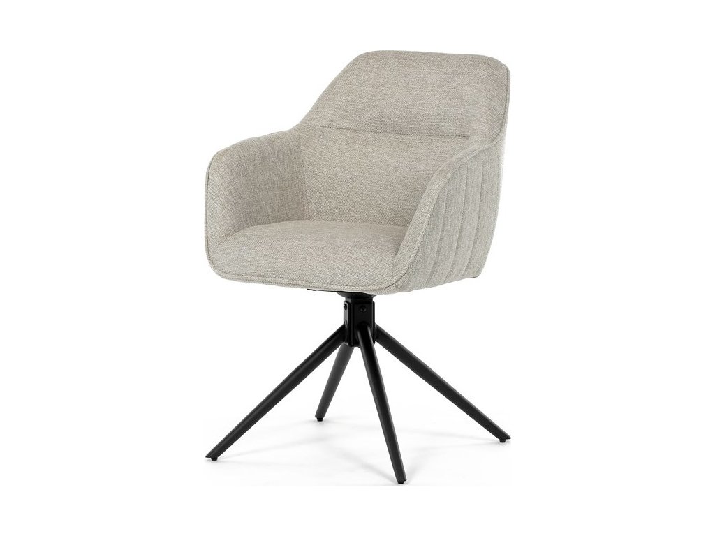 Moderní jídelní židle v krémové barvě s efektním prošitím zádové i přední části opěráku. Prošití je v brvě potahového materiálu. Zadní část opěráku je opatřena vkusným madlem pro snazší manipulaci. Čtyři kovové nohy v matném práškovém nástřiku vycházejí z centrálního bodu ve středu sedáku. Sedák je otočný o P90°+ L 90° s vratným mechanismem - funkce reset.