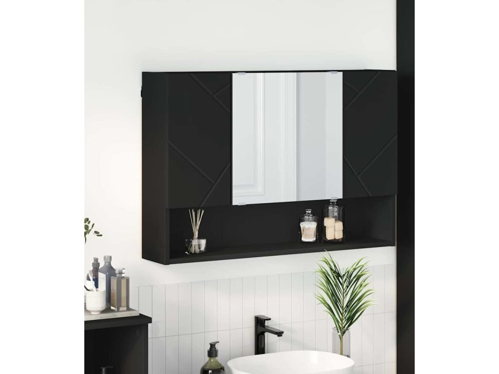 Zrcadlová skříň Nástěnný Černá 80 x 17 x 55 cm kompozitní dřevo [883355]