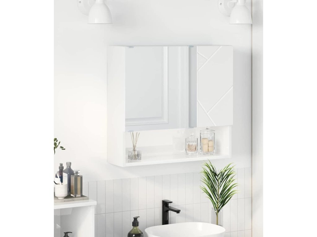 Zrcadlová skříň Nástěnný Vysoce lesklá bílá 59 x 17 x 55 cm [883368]