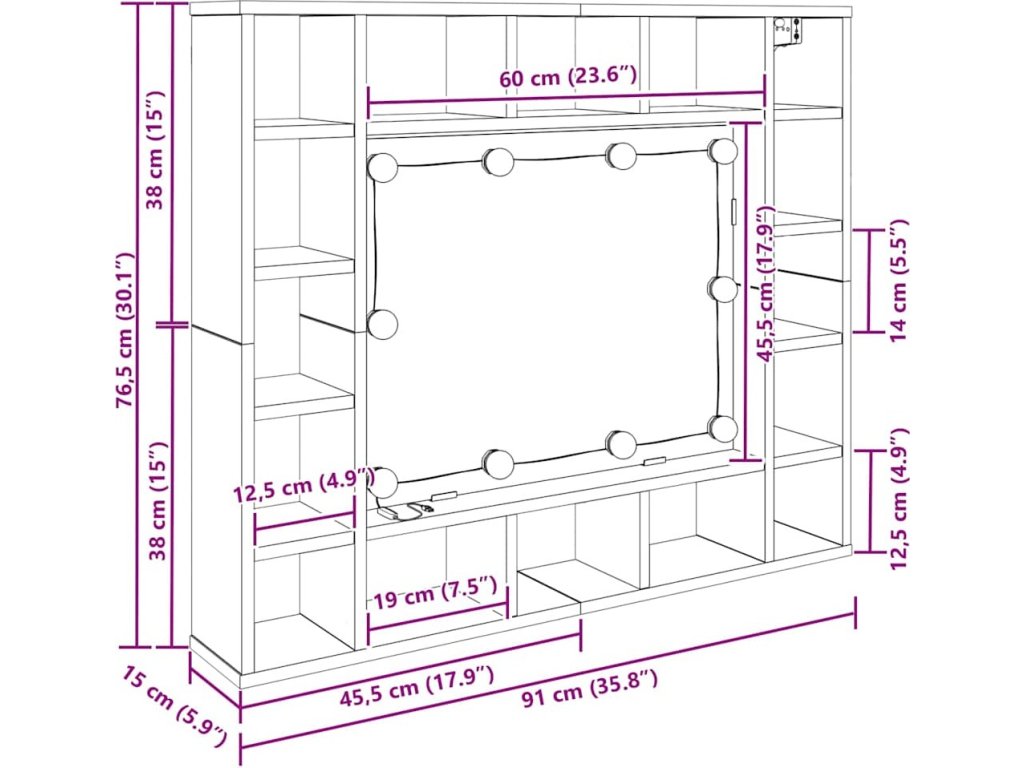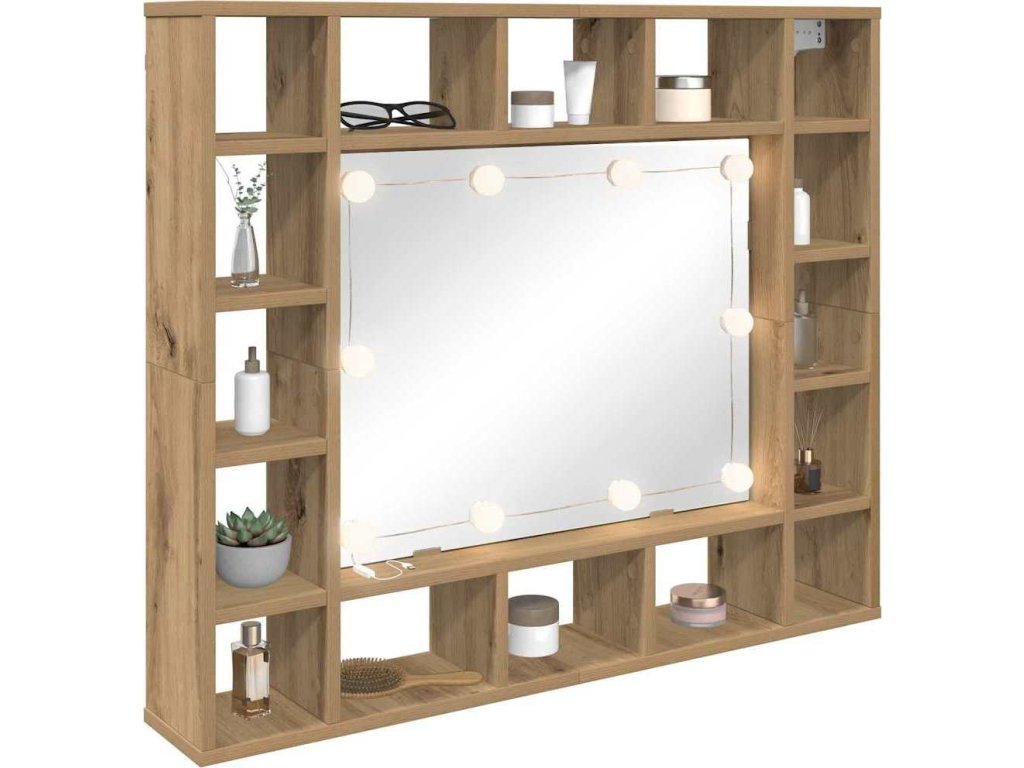 Tato zrcadlová skříňka s LED osvětlením je skvělým doplňkem pro různé prostory. Spojuje moderní funkčnost a styl. Obdélníkové zrcadlo v pevném kompozitním dřevěném rámu dodává jednoduchost a štíhlý vzhled, což se hodí do současných koupelen nebo chodeb. Je navržená tak, aby co nejlépe využívala prostor a efektivně organizovala všechny potřebné věci, zatímco vestavěné osvětlení zajišťuje skvělou viditelnost.