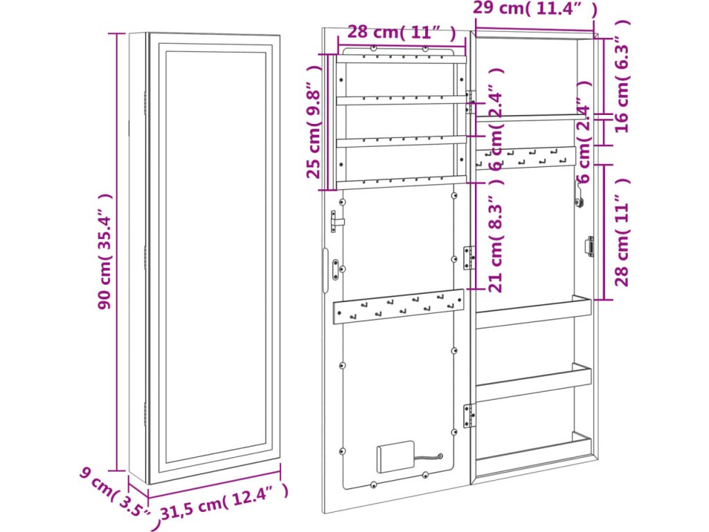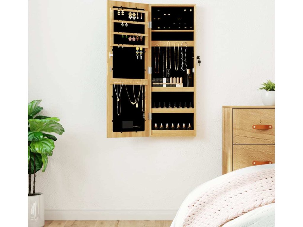 - Prostorově úsporný design: Zrcadlovou šperkovnici můžete zavěsit na dveře pomocí přiložených háčků nebo ji připevnit na stěnu a ušetřit tak místo na podlaze.