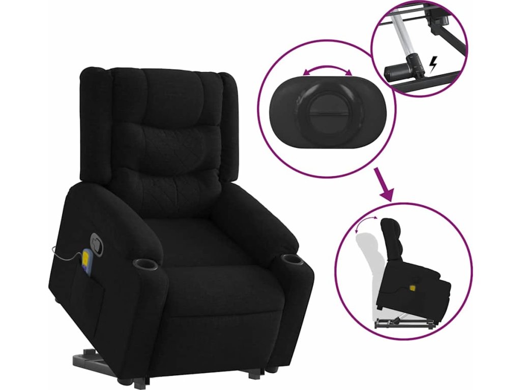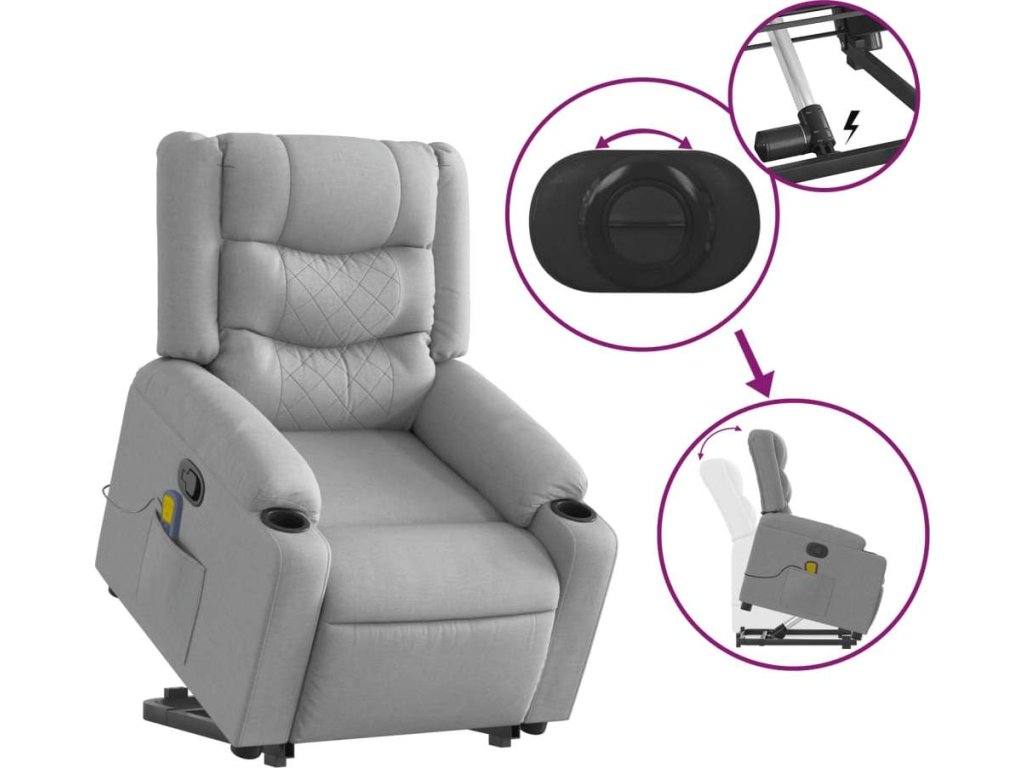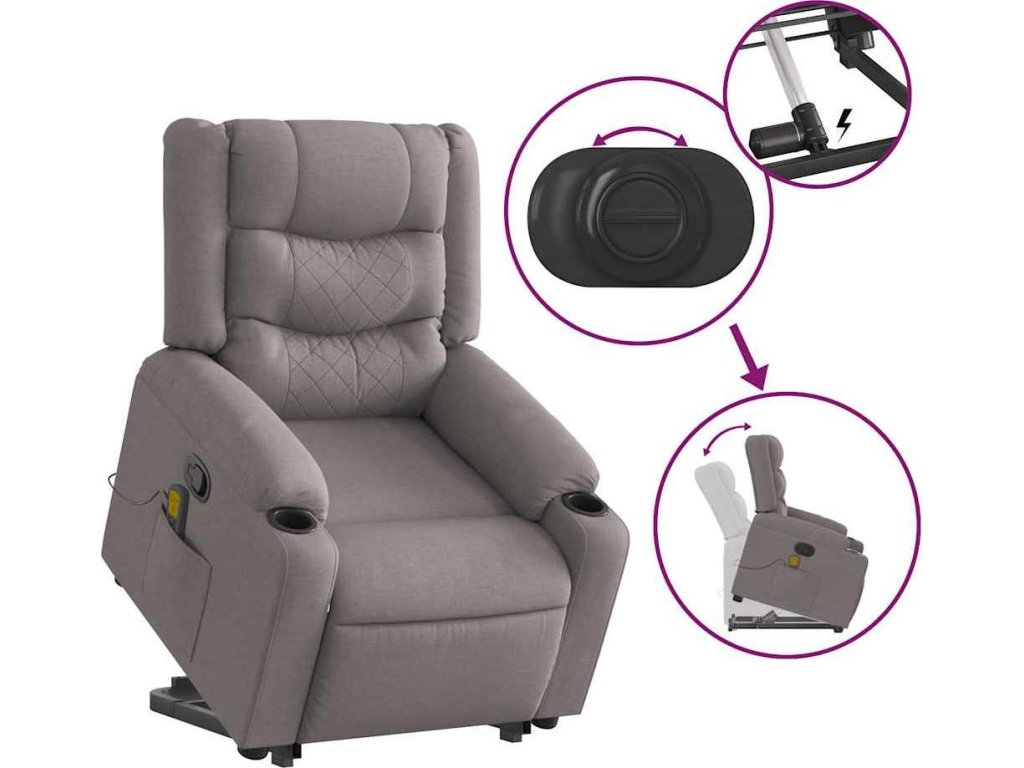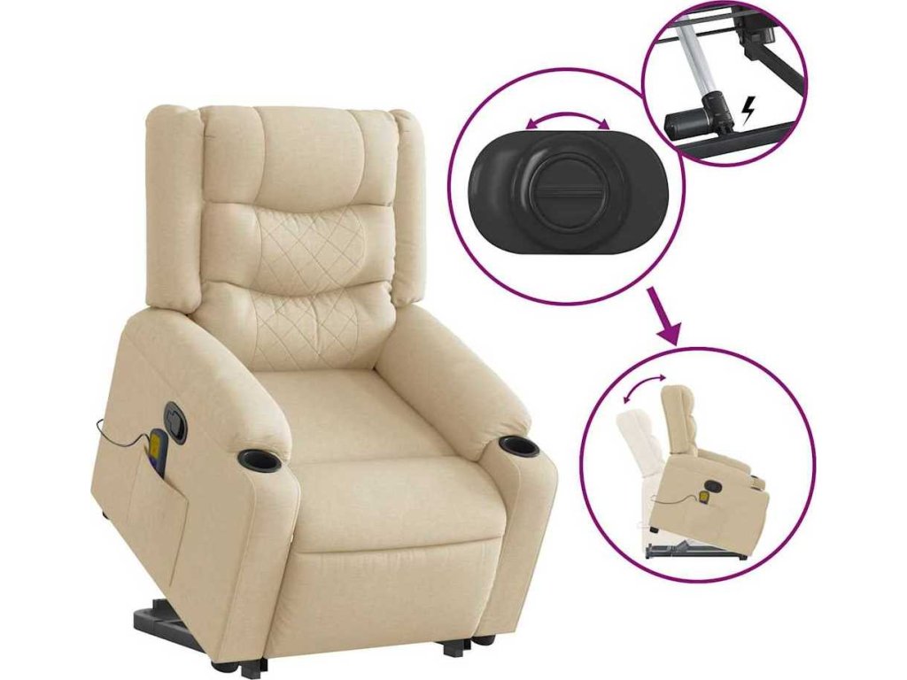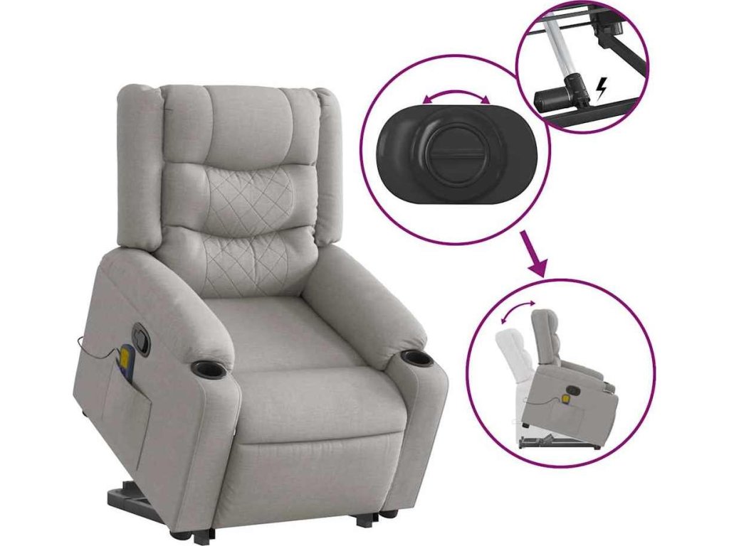 Zvedací masážní polohovací křeslo textil [3206576]