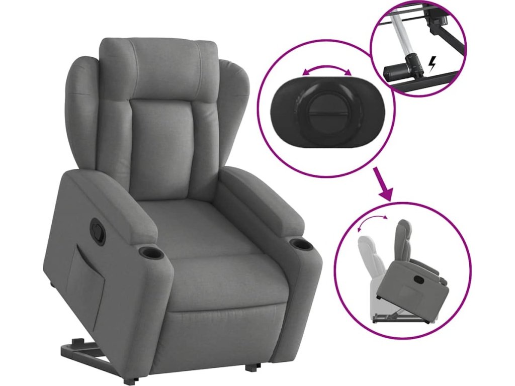 - Funkce sklápění: Toto polohovací křeslo pro seniory je vybaveno elektromotorem pro jeho zvedání. Vzhledem k funkci zvedání, která tlačí celé křeslo nahoru, můžete snadno vstát, aniž byste zatěžovali záda a kolena.