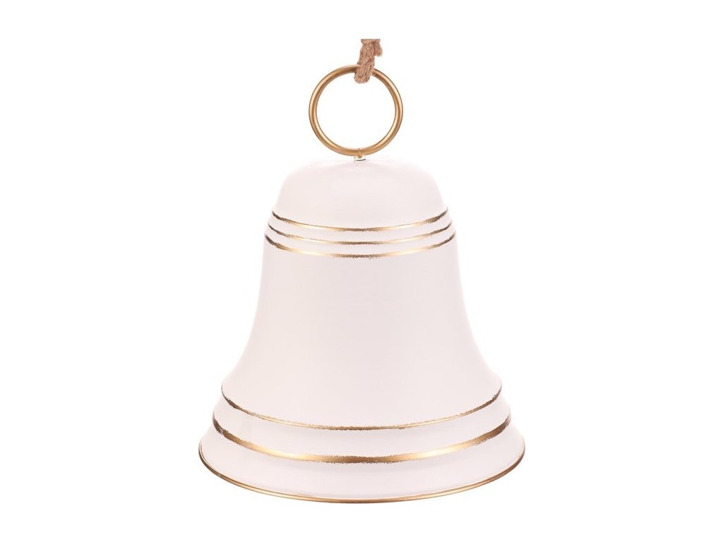 Velký kovový zvonek, v bílé barvě jako závěsná ozdoba, upoutá pozornost všude, kde se objeví. Díky svým obřím rozměrům není vhodný na klasický vánoční stromeček, neboť by jeho větvičky nápor tíhy nevydržely. Skvěle se ale hodí jako samostatná dekorace na stůl, podlahu, stěnu, nebo zavěšená ze stropu, případně na vzrostlý strom venku. Ideální pro vytvoření působivé sváteční atmosféry s dominantním dekoračním prvkem, který nikdo nepřehlédne.