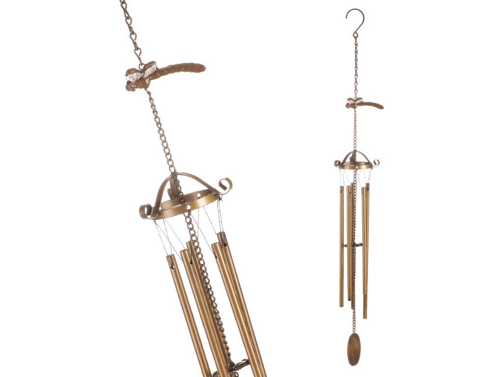 Zvonkohra vytváří při pohybu větru jemnou melodii a tím napomáhá obohatit okolní prostředí o příjemný zvukový efekt. Konstrukce je tvořena jemnými kovovými trubičkami zavěšenými na provázku. Díky tomu při závanu větru do sebe naráží a vytváří tím onen líbivý zvuk. Konkrétně tato je navíc ozdobena siluetou vážky a je v krásné měděné barvě. V některých případech může zvonkohra plnit i užitečnou funkci tím, že odežene nezvané návštěvníky v podobě ptáků či jiných živočichů, kteří by si jinak třeba pochutnali na naší úrodě. Zvonkohru můžeme díky háčku na řetízku zavěsit na hřebíček v pergole, altánku, nebo za jakoukoli vhodnou větev poblíž.